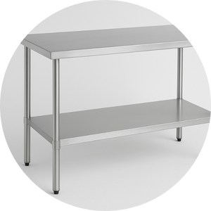 Bancada de Inox 1,10m com Rodobanca e Duas Pratele